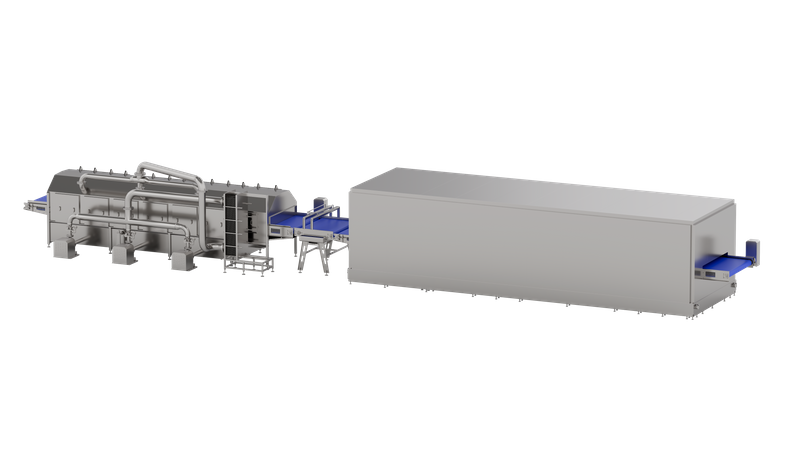 Система замораживания рассольного душа — это компактная и высокопроизводительная система быстрой заморозки.В рыболовстве идеально подходит для быстрого замораживания креветок, мальков, кальмаров и сардин или аналогичных продуктов после рыбалки.Эти водные продукты можно заморозить до температуры - 12 - 14 ℃ через 7 - 10 минут после опрыскивания хлоридом натрия через туннель в перфорированной рамке.Впоследствии продукты поступают в туннель с воздушным охлаждением до -35 ℃, где продукты дополнительно замораживаются до температуры ниже -18 ℃.